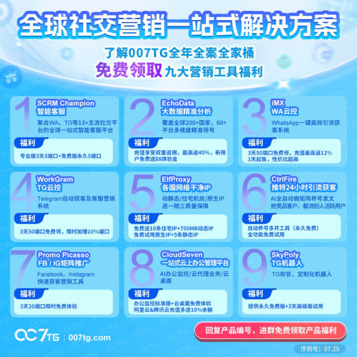 老板您好,请说出您的业务需求,领取007TG全套营销工具大礼包: